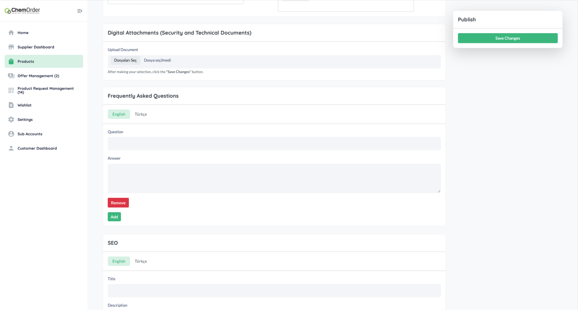 Complete the Frequently Asked Questions (FAQ) module for your products. This allows Buyers to quickly find answers to their queries about your products or services, enhancing customer satisfaction and reducing support workload. Well- prepared FAQ content is indexed by search engines, increasing organic traffic.