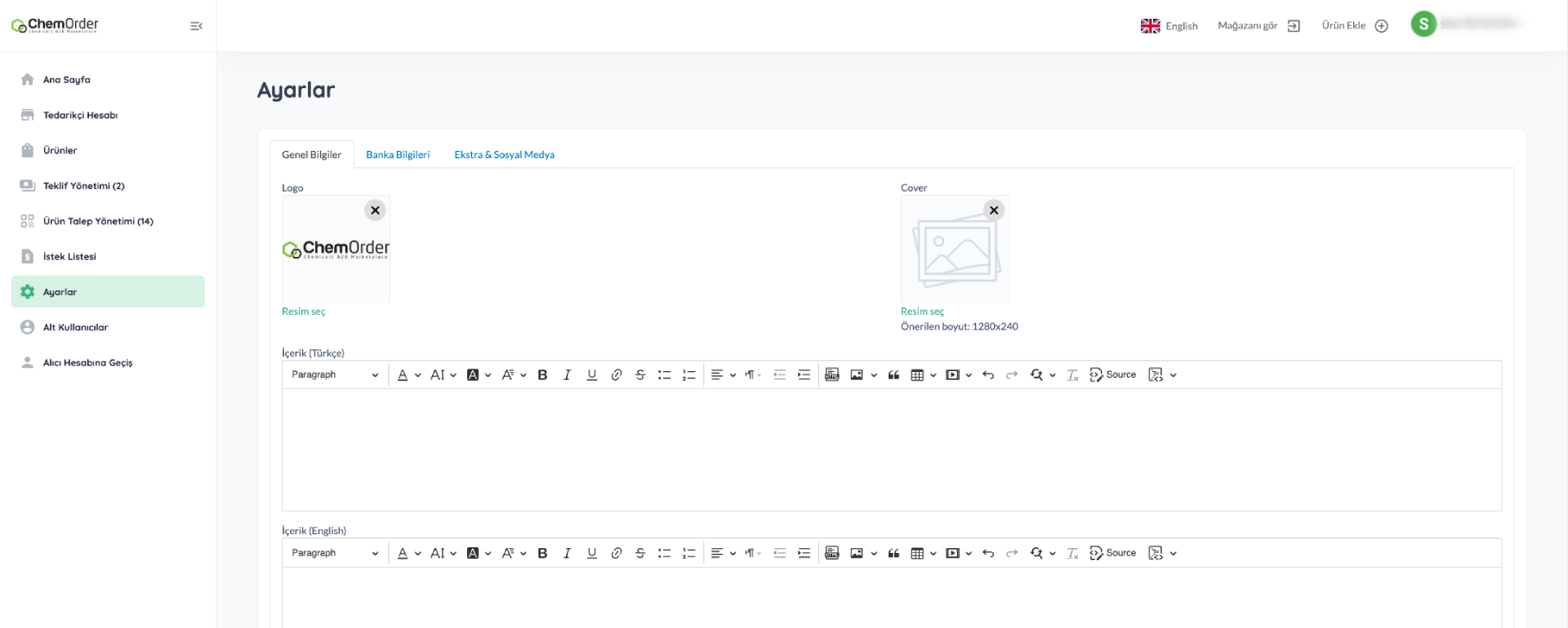 Mağazanıza firma bilgilerini, firma hakkında yazıyı, görselleri, logonuzu ve sosyal medya bağlantılarınızı ekleyin, mağazanız öne çıksın ve daha fazla alıcı tarafından görüntülensin.