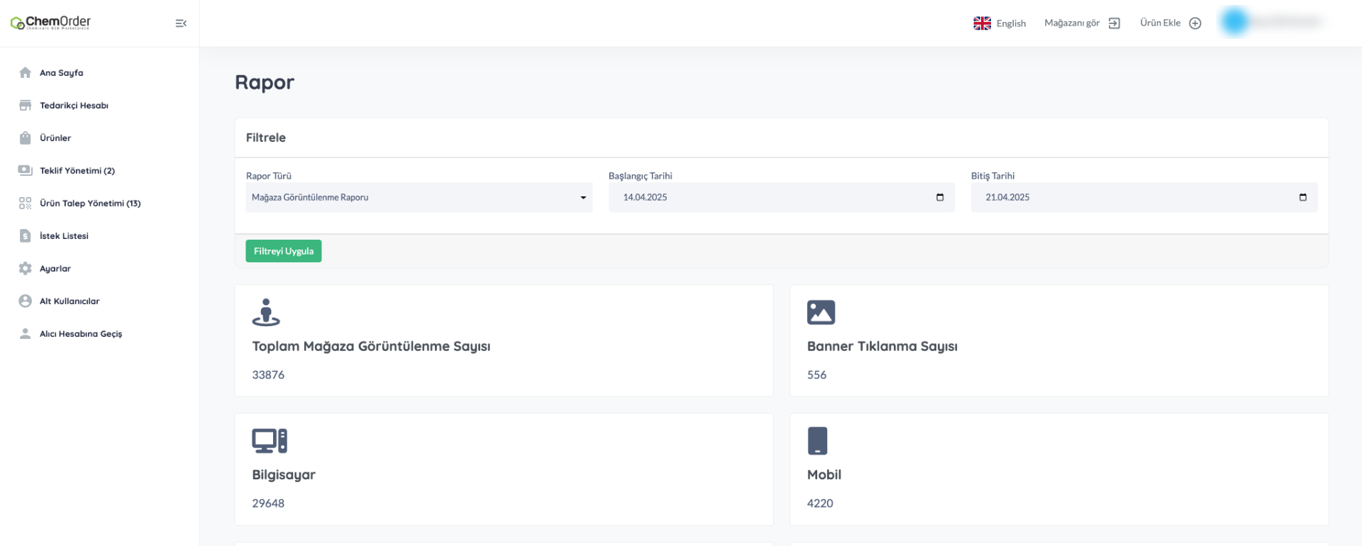 Mağaza görüntülenme sayısı, ana sayfa banner görüntülenme sayısı ve aylık toplam görüntülenmeler genel bir analiz sunarken, ürün görüntülenme sayıları pazarlama stratejilerinizi şekillendirmenize olanak tanır.